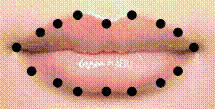メイクする者が必要とする情報は,どの部分を太らせるか細めるかである.部分の指定はリップメイクに際して適切な精度であることが必要である.そこでここでは図2に示すロケーションモデルを提案し,そのロケーションを図3の呼称で指示する.