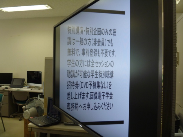 大型ディスプレイの価格低下により,ディジタルサイネージ等のさまざまな展示に大型ディスプレイが利用されはじめている[1].通常のテレビ,コンピュータディスプレイ等での表示内容は,多くの場合,一人またはごく少人数によって,画面の正面から画面に近い距離でレビューされるが,大型ディスプレイでの表示内容は,複数人によって,画面から離れた位置で必ずしも正面ではない位置においてレビューされることが多い.