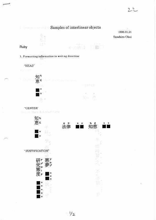 インタネット等を用いたWeb環境の普及によって, 国際的な文書交換が日常化し, さらに1文書中に複数の言語(またはスクリプト)を含む文書の交換が多くなっている。このような文書の交換に際しても, 従来の活版印刷等と同様の品質の可視化出力が望まれる。
